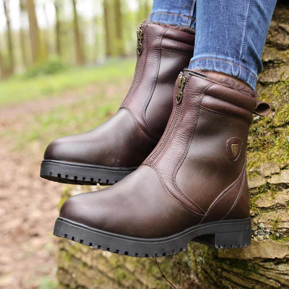 As a product that combines style and function, Moretta Ladies Atri Zip Country Boots is designed for cold, wet weather. Featuring Moretta moisture resistant technologies, DRYFLEX water-resistant leather, and faux fur thermal linings, these boots keep feet warm and dry while remaining breathable. Atri also offers added grip and ergonomic comfort with its true country boot sole and contoured design. Perfect for any outdoor adventure, these boots provide anti-shock support and traction over challenging terrain.