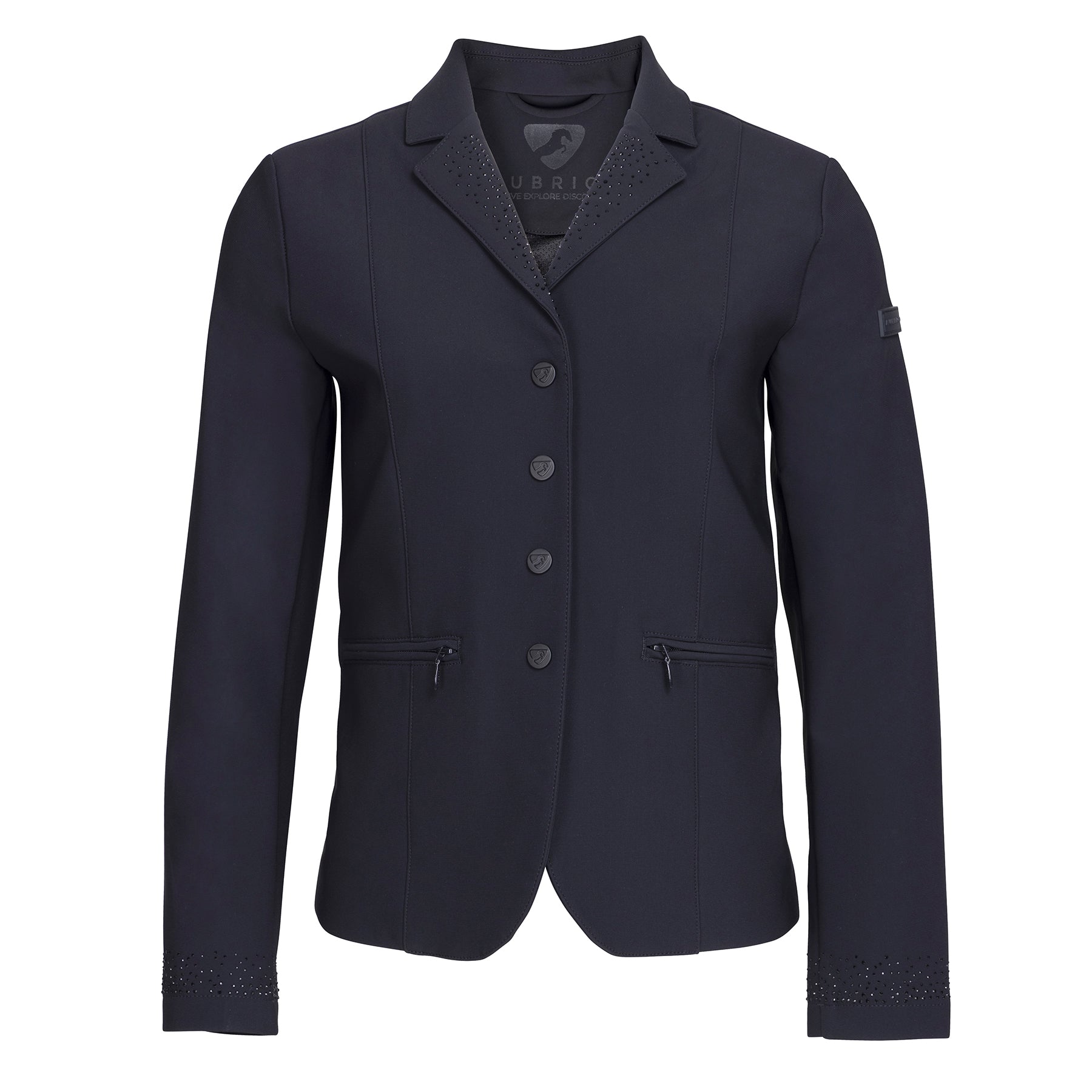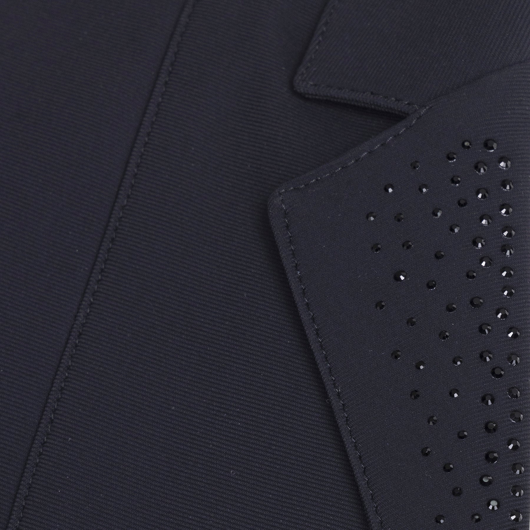 - Tonal diamante decorated notch lapel and cuffs