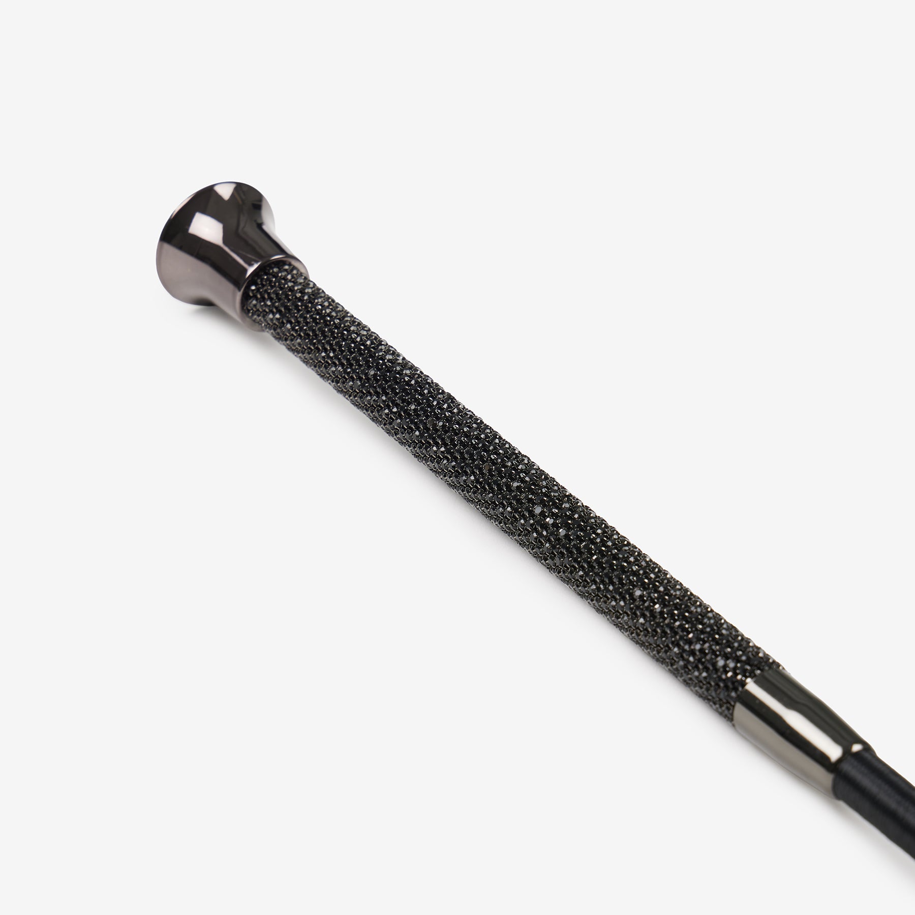 This light and comfortable whip is a stylish essential for any dressage or schooling rider. The sparkly rubber grip handle provides great grip in any weather and offers superior balance when handling.