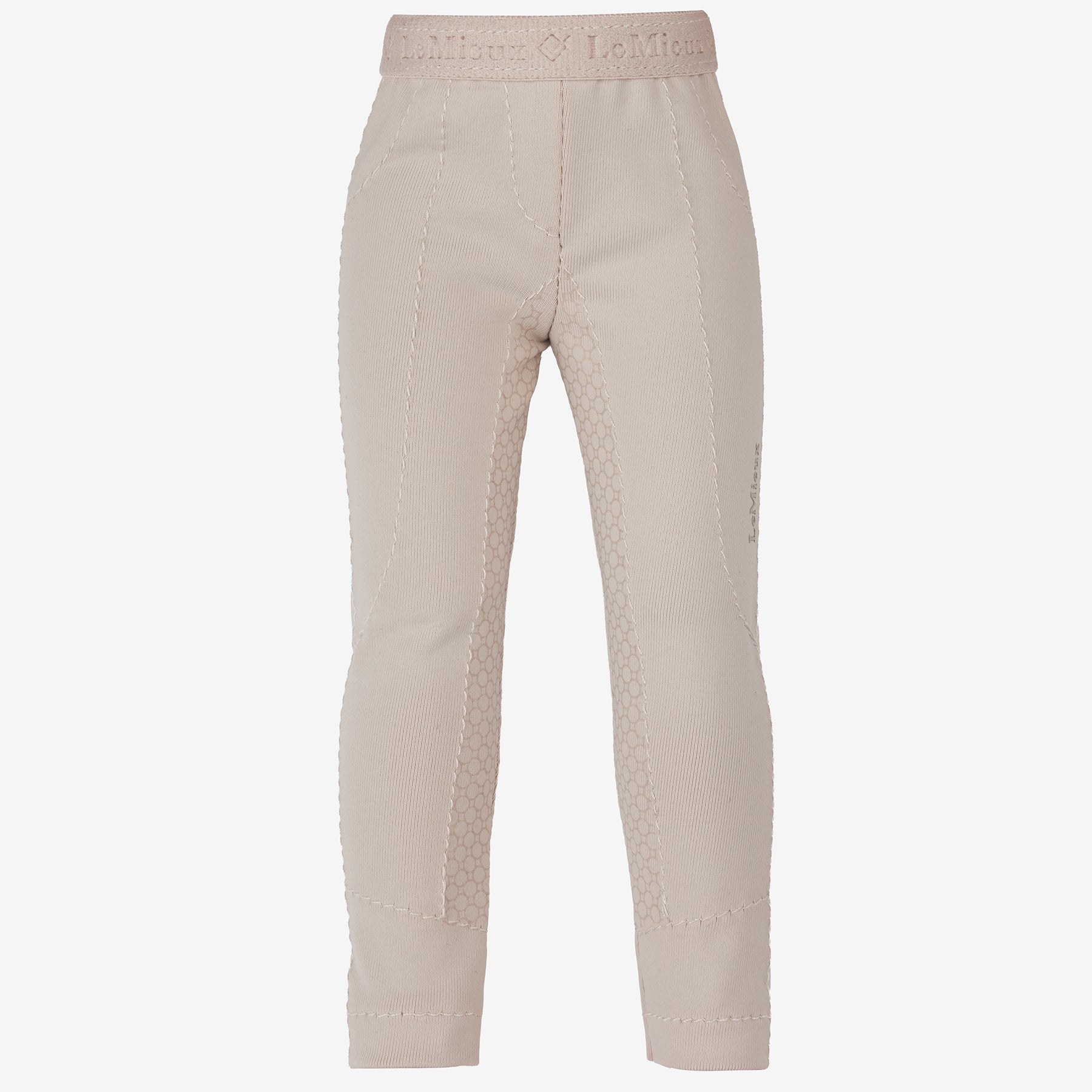- The beige breeches have detailed style lines and a full seat silicone print
